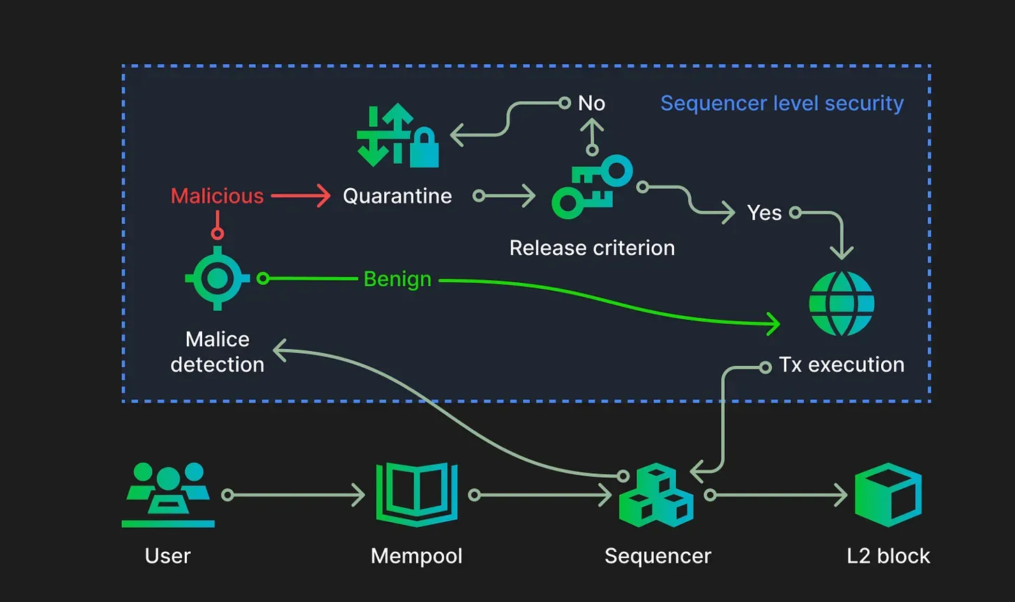 For example, the Sequencer-Level Security proposed by Zircuit 1 introduces a safety 2 valve at the execution layer. It pragmatically assumes that smart contracts will inevitably contain vulnerabilities and that human intervention is rarely timely enough. Before transactions are written to the blockchain, Zircuit adds an isolation mechanism to detect anomalous behavior, thereby constraining attackers. This makes attacks that once seemed profitable far less attractive. As long as attackers decide it’s not worth the effort, the system becomes safer by default.