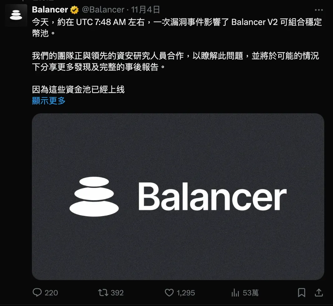Alarms went off across the blockchain immediately. Since every on-chain transaction record is public in real time, cybersecurity firms like Check Point and PeckShield quickly detected abnormal fund outflows from Balancer through their automated monitoring systems and alerted the development team right away.