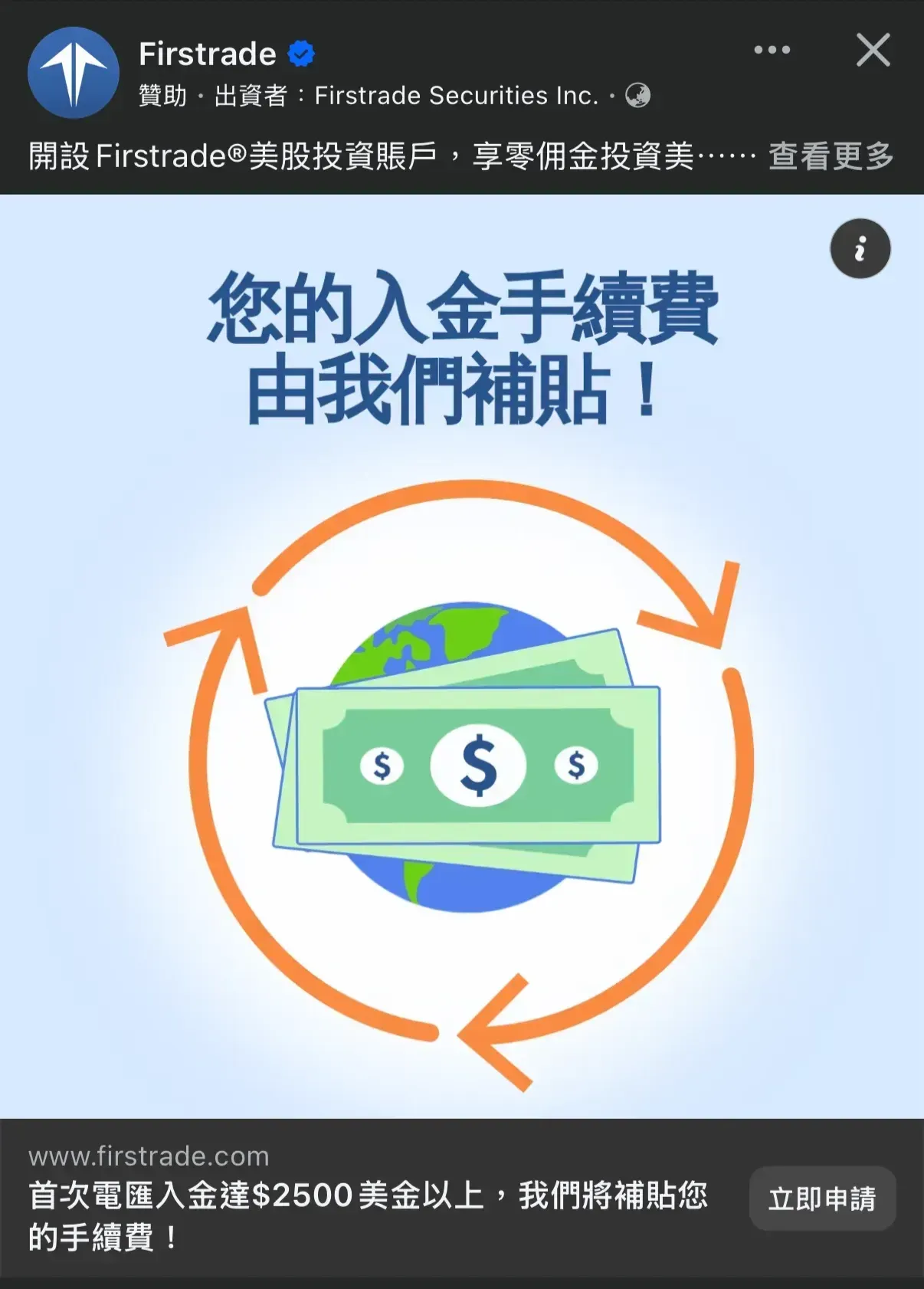 Lately, I’ve been seeing Firstrade ads all over my social feeds, tempting me to invest in U.S. stocks (as shown below). If you make your first wire transfer deposit of more than USD 2,500, Firstrade will reimburse USD 25 of the wire transfer fee. But this ad may not last much longer, because Firstrade’s competitor, Interactive Brokers (IB), has already announced support for stablecoin deposits.
