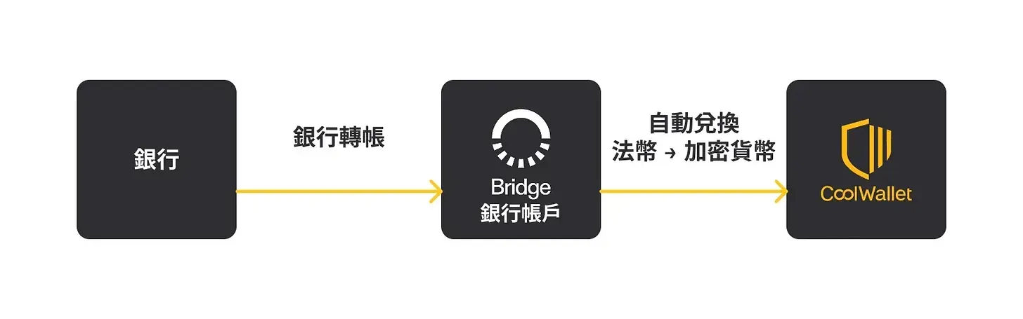 CoolWallet, in partnership with Bridge (a U.S.-based payment service provider under Stripe), has officially rolled out its new “fiat on-ramp” service. Starting now, all you need to do is make a bank transfer. Using a free, newly created bank account, you can exchange U.S. dollars (USD) or euros (EUR) for designated cryptocurrencies, which will then be deposited directly, securely, and quickly into your CoolWallet wallet address. The process is simple, safe, and compliant—making crypto on-ramping more intuitive than ever.
